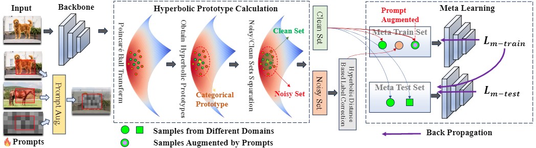 Mitigating Label Noise using Prompt-Based Hyperbolic Meta-Learning in Open-Set Domain Generalization.