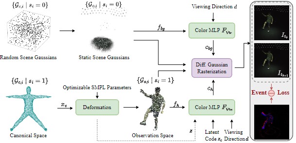 Event-guided 3D Gaussian Splatting for Dynamic Human and Scene Reconstruction.