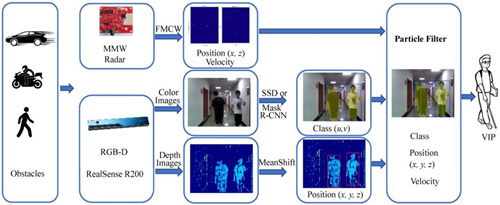 of Millimeter wave Radar and RGB-Depth sensors for assisted navigation of the visually