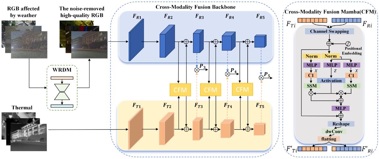 CFMW: Cross-modality Fusion Mamba for Robust Object Detection under Adverse Weather.